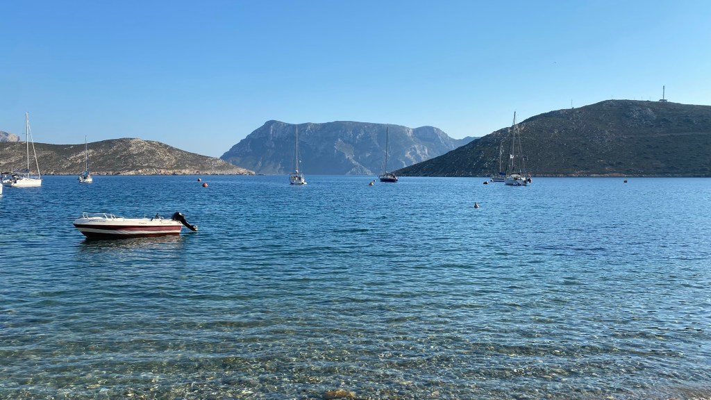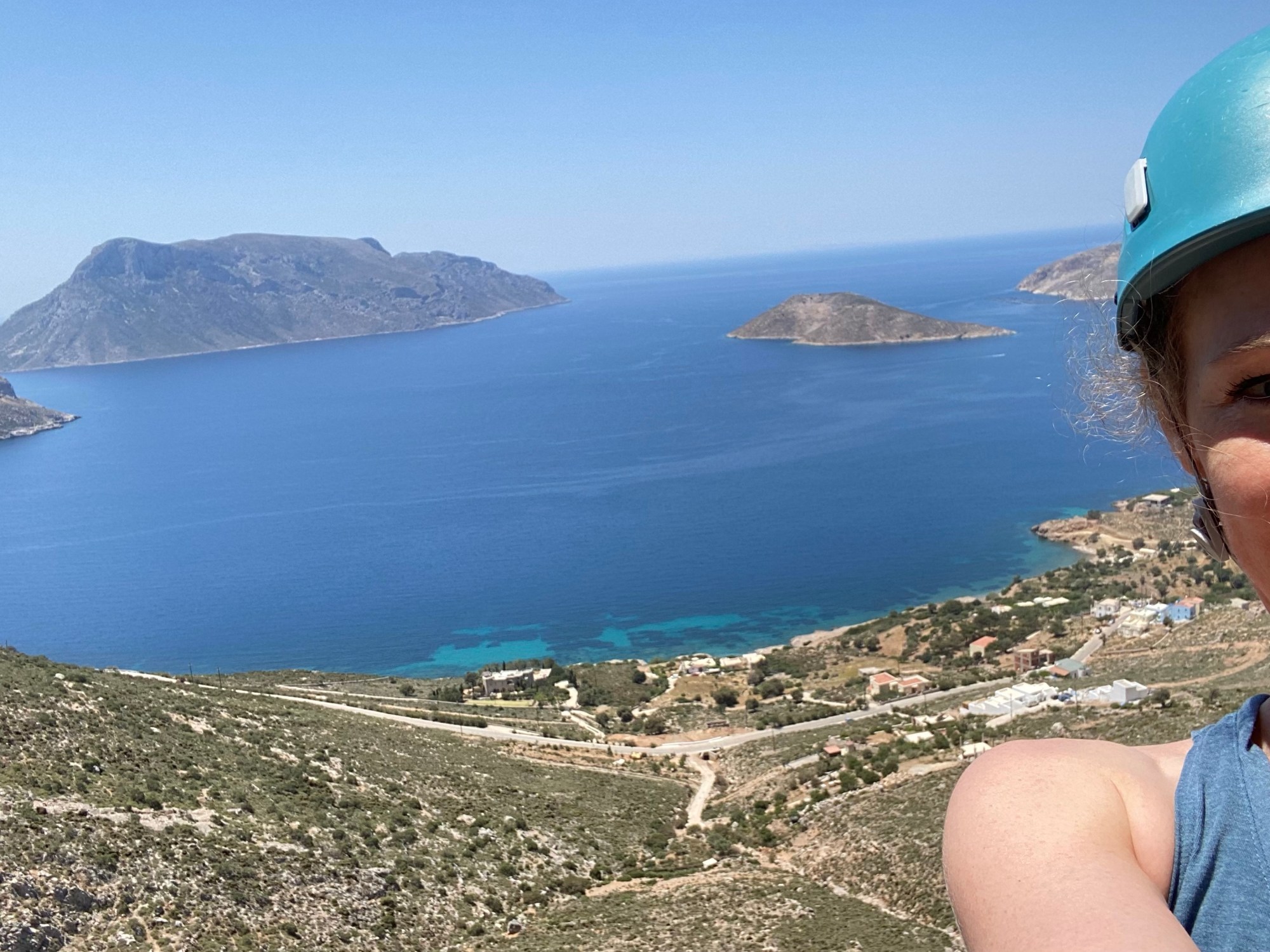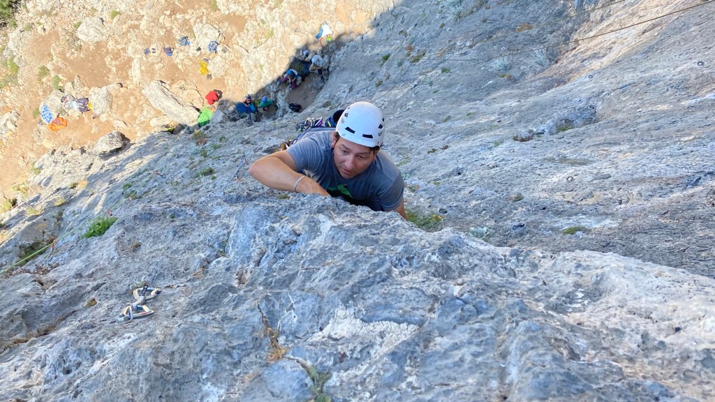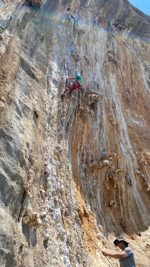 Today we climbed in Ghost Kitchen — an area north of Masouri with yet another amazing view of the water. The approach was about 25m, a steep climb and there wasn’t much of a breeze today so the sun felt very hot.