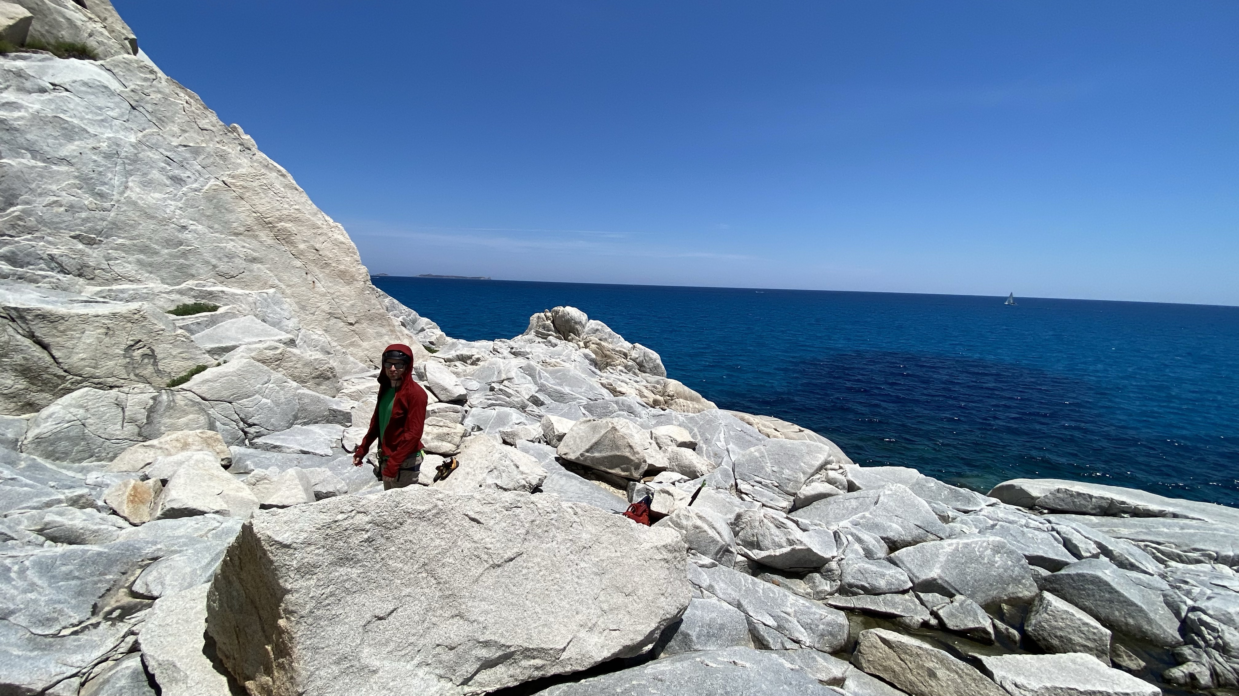 On our last Sunday based in Ulassai we drive south to Cava Usai to experience climbing on dramatic and beautiful rock formations with a sea of turquoise water at our backs.